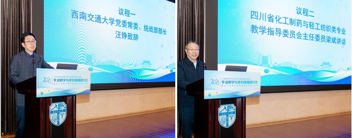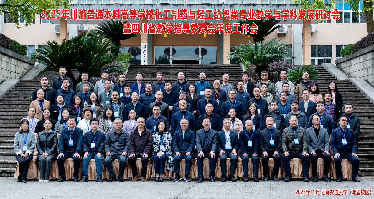 由四川省普通本科高等学校化工制药与轻工纺织类专业教学指导委员会牵头主办的《2025年川渝普通本科高等学校化工制药与轻工纺织类专业教学与学科发展研讨会暨四川省教学指导委员会年度工作会》于2025年11月7日至9日在西南交通大学峨眉校区顺利召开。本次会议旨在深入贯彻落实全国教育大会及2025年全国教育工作会议精神,全面提升川渝高校化工制药与轻工纺织类专业人才培养质量。本届会议由西南交通大学承办。西南交通大学党委常委、统战部部长汪铮,四川省化工制药与轻工纺织类本科专业教学指导委员会主任委员、韩国主播