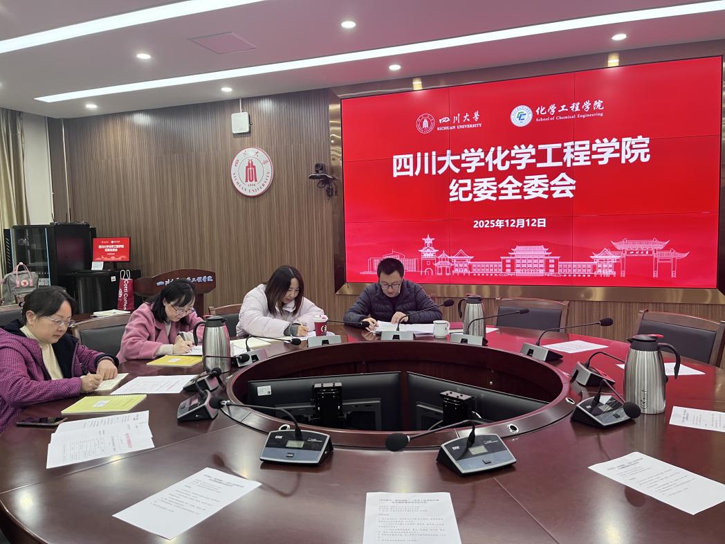 纪律检查委员会全体委员会在望江校区化工楼312会议室通过线上线下形式召开。会议由院党委副书记兼纪委书记卿培亮主持。