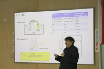 讲座伊始,Patrik Schmuki教授深入阐释绿色经济的全球战略意义,精准剖析风光发电产业发展瓶颈,提出电解水制氢是存储富余能源、破解产业难题的关键路径。接着,他针对析氢反应催化剂指出传统铂催化剂成本较高,而单原子铂催化剂能最大限度提升铂原子利用率,催化活性与稳定性均优于传统铂基材料,且制备工艺简便、成本可控,为太阳能制氢的商业化应用奠定了坚实基础。