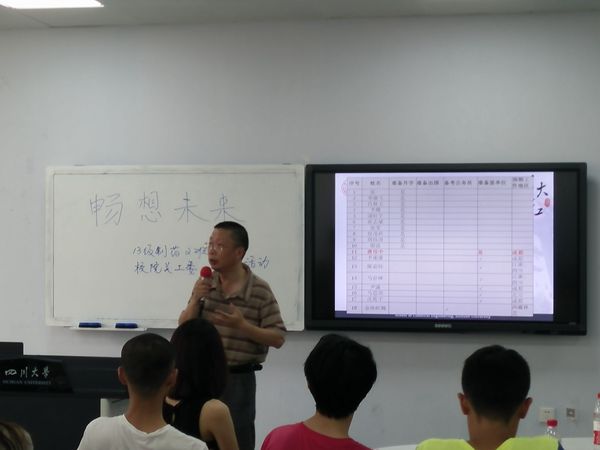 2013级制药工程专业2班开展的“跟班关爱学生成长教育实践”系列活动之一,在江安校区综合楼B座306教室举行。与会的有关工委梁明征老师、付运清老师、郭明秀老师、李维俊老师、秦自明老师、万国荣老师、谢茂农老师、徐怡老师、杨传云老师、张卫红老师、曾志源老师、赵雪琴老师、侯筑老师,制药2班班主任赵刚老师、化工韩国主播