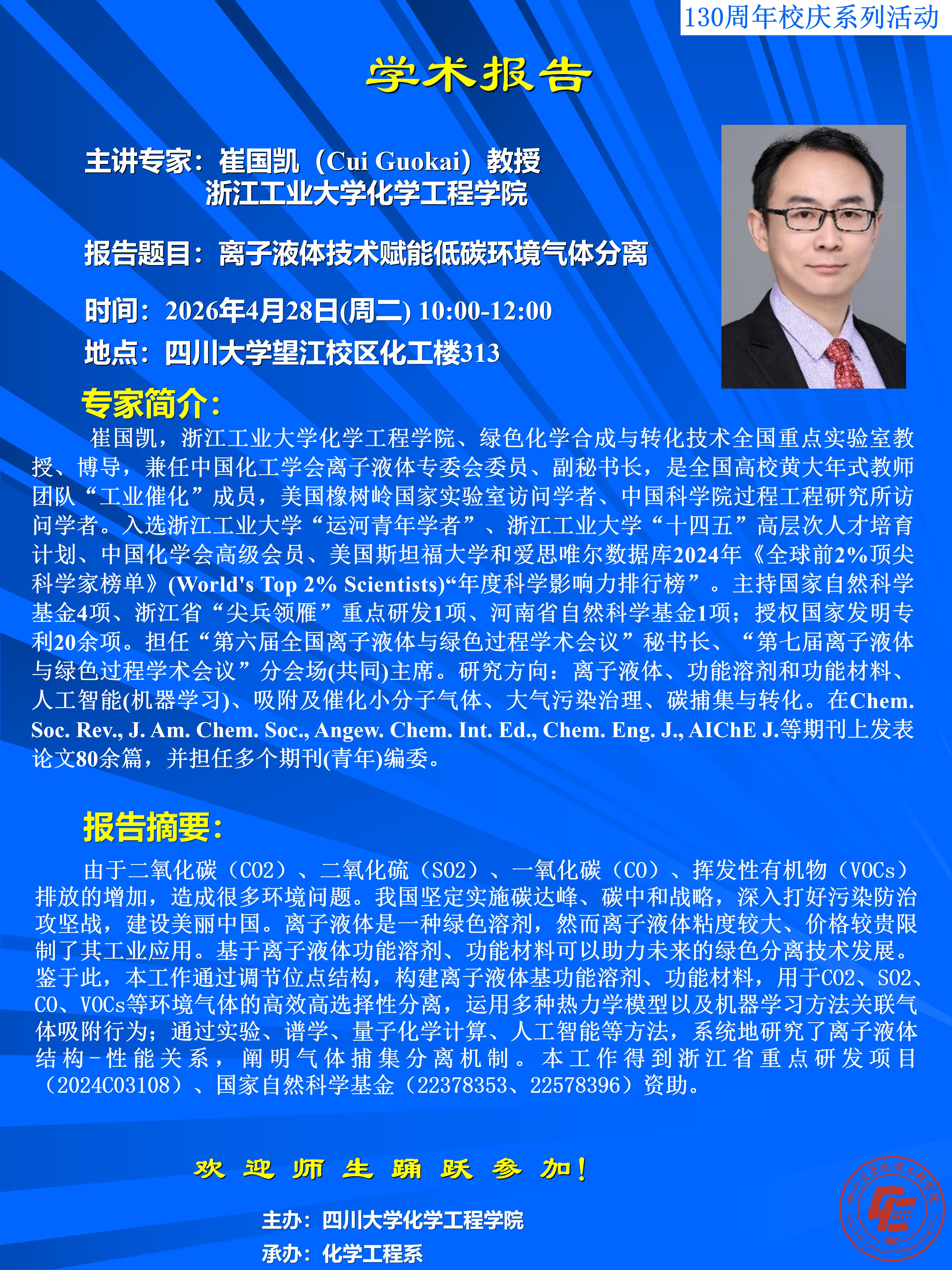 【卓越大讲堂】化工学术大讲堂|基于纳米粒子数据库探索微观尺度多元体系